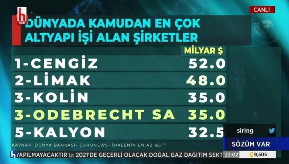 Son dönemde, dünyada kamudan en çok altyapı işi alan şirketler listesinde Cengiz Holding’in zirvede yer aldığı, Limak Holding, Kolin Holding ve Kalyon Grup’un da ilk 5’te yer aldığı iddiası gündemde ön plana tekrar çıktı.