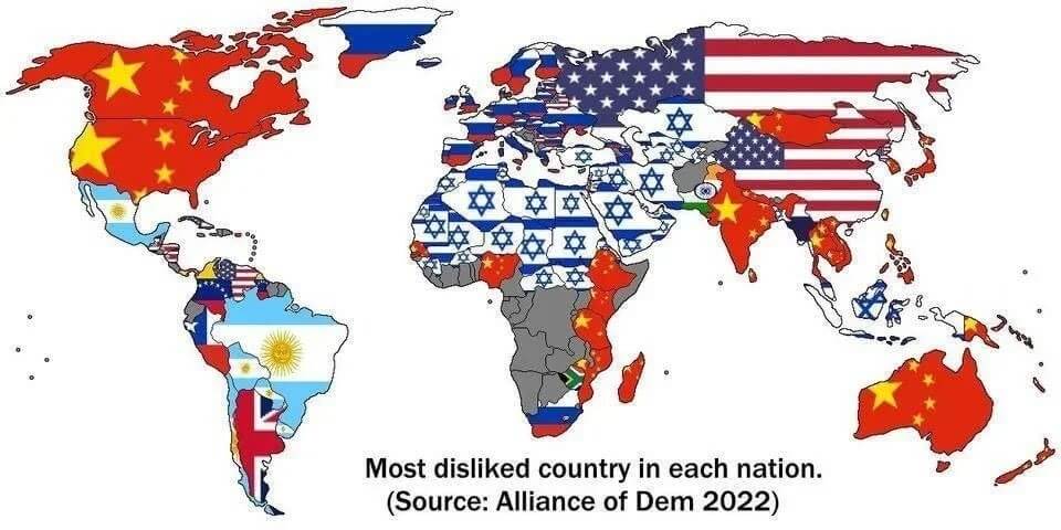 Dünyada nefret haritası ABD, Çin, Rusya ve İsrail üzerinden birleşiyor. pic.twitter.com/8YYJXzhGKf