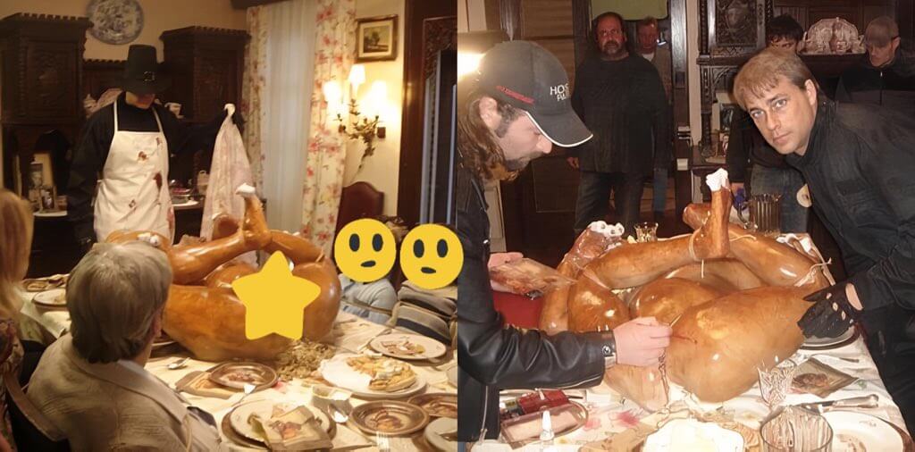 Epstein dosyalarından paylaşıldığı görülen masada yemek olarak servis edilen insan cesedi görüntüsü, Robert Rodriguez ve Quentin Tarantino’nun birlikte yazıp yönettikleri Grindhouse adlı film için Eli Roth tarafından 2007 yılında hazırlanan Thanksgiving (Şükran Günü) adlı sahte fragmanın set görsellerinden biri.