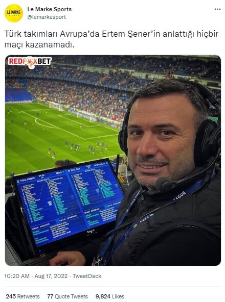 Ünlü spor spikeri ve sunucu Ertem Şener’in anlattığı Avrupa futbol organizasyonları kapsamında yaptıkları maçları Türk takımlarının kazanamadığı iddia edilmişti.