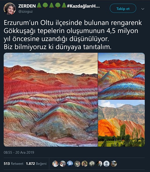 Erzurum’dan sanılarak paylaşılan Çin’deki gökkuşağı renkli yükseltilere ait görseller aşağıdaki gibidir.