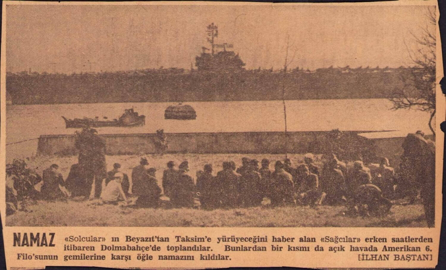 Tarihimize “Kanlı Pazar” olarak geçen bu olayda 2 kişi öldürüldü ve yaklaşık 200 kişi yaralandı. ABD’nin 6. Filo’sunun demirlediği Dolmabahçe’de bir araya gelen sağ muhafazakar grubun kıble istikametinde namaz kıldığı anda kaydedilen fotoğraf Türk siyasî tarihinin ikonik fotoğraflarından biri oldu. Söz konusu fotoğraf 17 Şubat 1969 tarihli Milliyet gazetesinde “Dolmabahçe Cami avlusunda 6. Filo gemisine karşı şükür namazı kılan topluluk, namazdan sonra, 6. Filo’yu protesto etmek üzere Taksim meydanında toplananlara saldırdı.” açıklamasıyla yayımlandı.