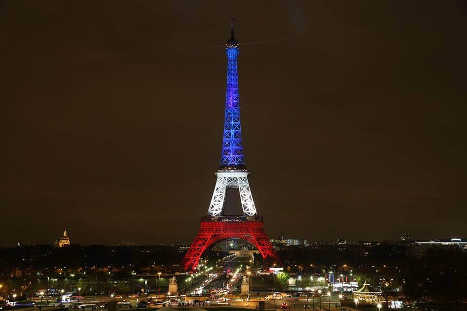 Ce soir, la Tour Eiffel est Bleu Blanc Rouge. #NousSommesUnis #FluctuatNecMergitur pic.twitter.com/hIhyO4rOJC