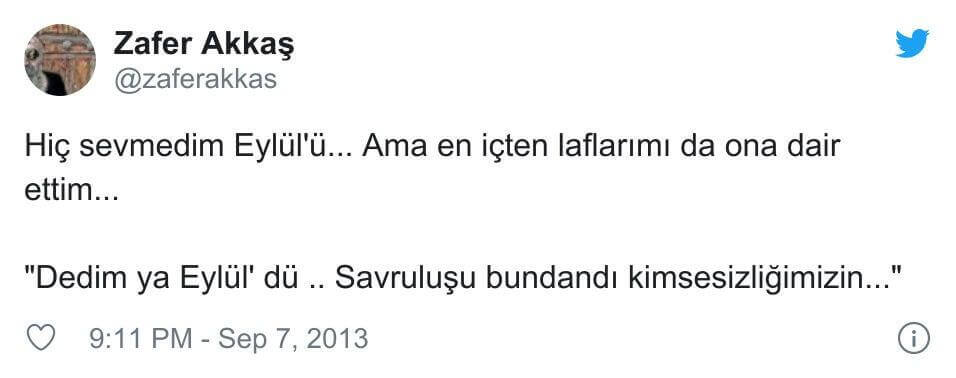 Zafer Akkaş’ın Eylül ile ilgili sosyal medya paylaşımından birçok paylaşım yaptığı görülebiliyor: