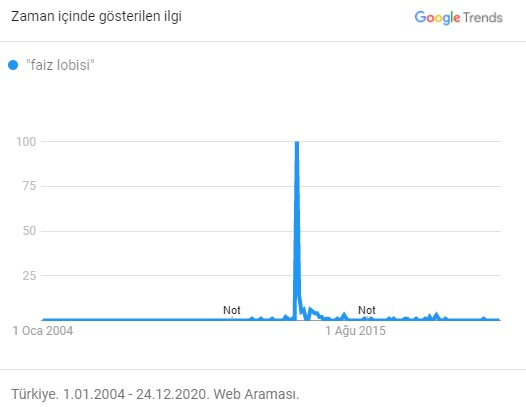 Google Trends üzerinden “faiz lobisi” deyimini sorguladığımızda kullanım sıklığının 2011 yılı öncesinde kayda değer ağırlığa sahip olmadığı anlaşılıyor.