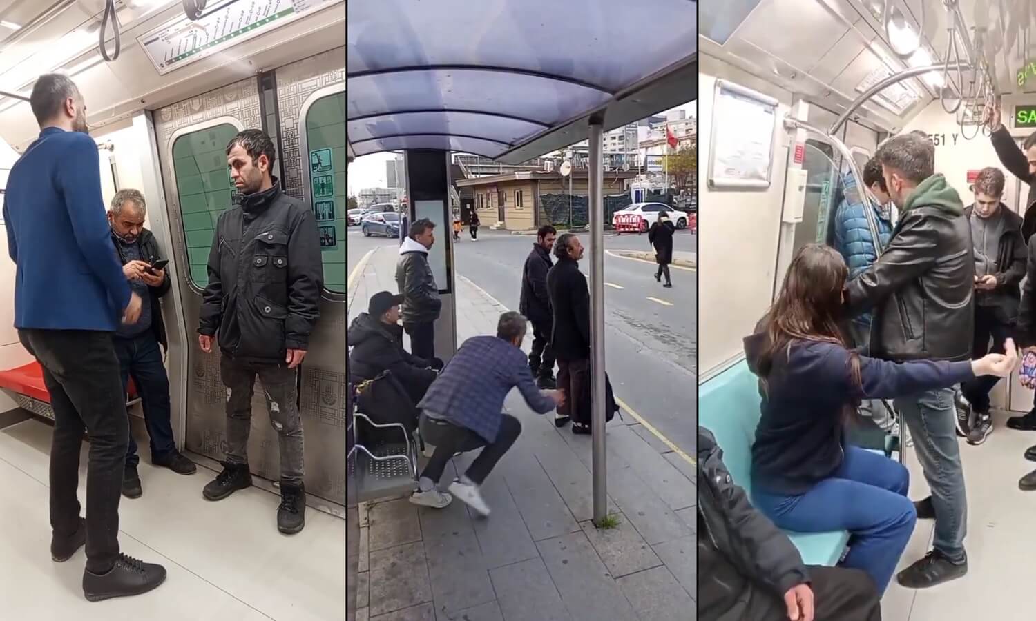 “Metroda bir kadının kendisini alıkoyan erkekten kurtulmak için diğer yolculara eliyle yardım çağrısında bulunduğu, ardından diğer vatandaşların duruma müdahale ettiği” yönündeki mizansen:
