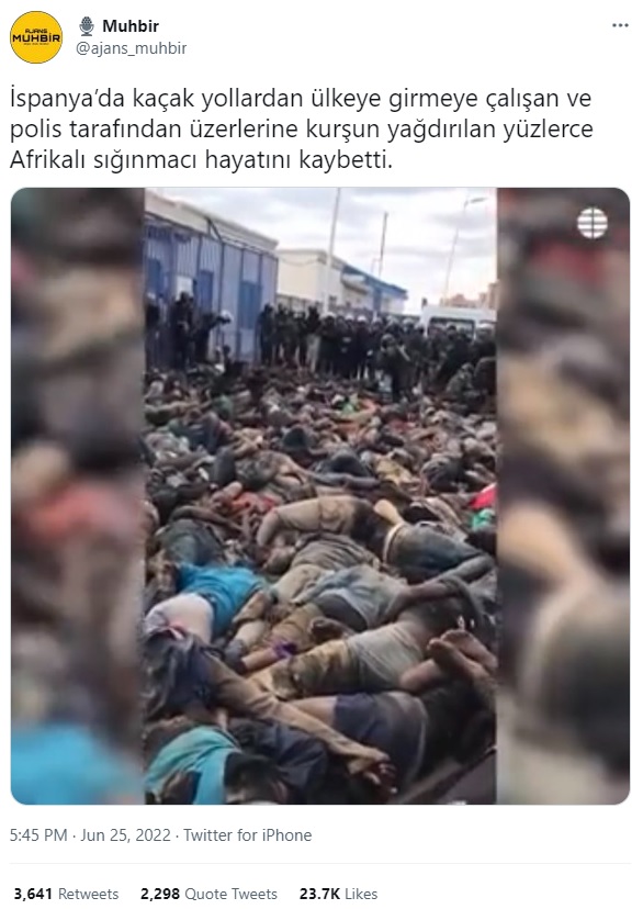 Sosyal medyada “Melilla katliamı” olarak nitelenen söz konusu faciada İspanyol polisinin Kuzey Afrikalı göçmenleri ateş açarak öldürdüğü, İspanya Başbakanı Pedro Sanchez’in de öldürülen göçmenler için İspanyol polisine teşekkür ettiği ileri sürülmüştü.