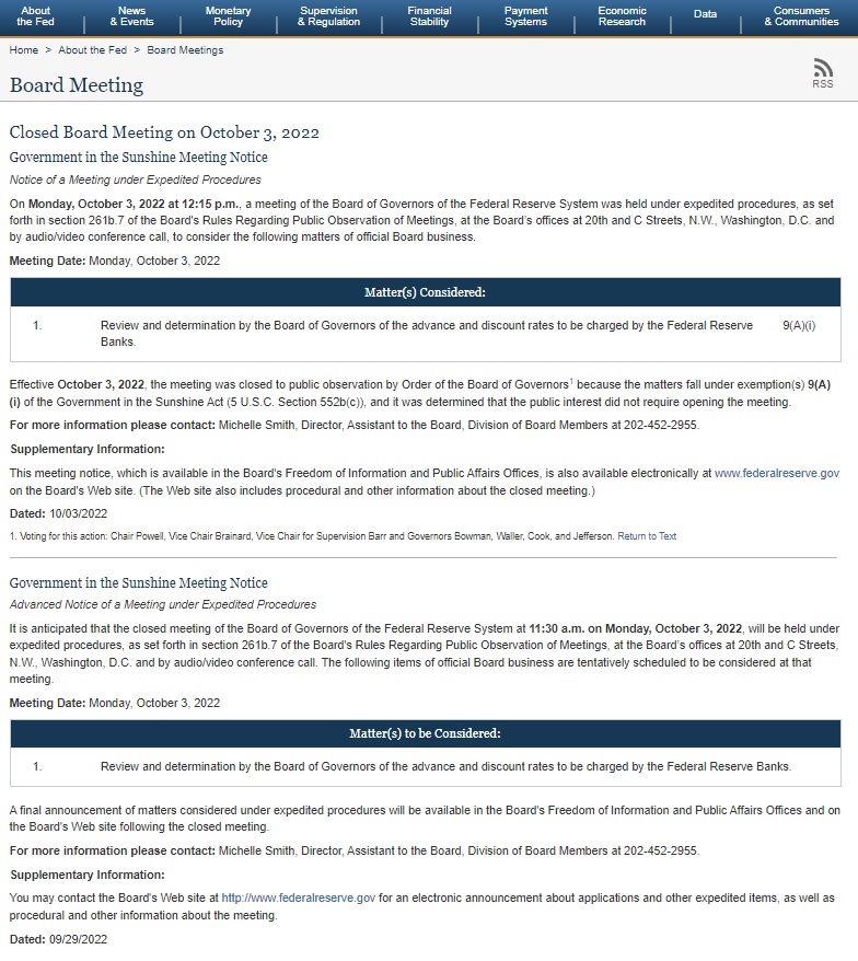 3 Ekim 2022 tarihli Guvernörler Kurulu Toplantısı hakkında sunulan detaylar incelendiğinde iddia edildiği gibi federal fonlama oranı değil avans ve iskonto oranı odaklı bir rutin görüşme gerçekleştirildiği görülebiliyor.