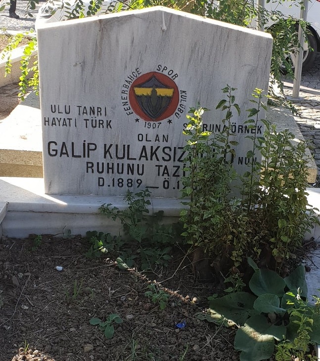 Galip Kulaksızoğlu’nun Karacaahmet Mezarlığındaki kabri başında bir Fenerbahçe amblemi yer almaktadır.