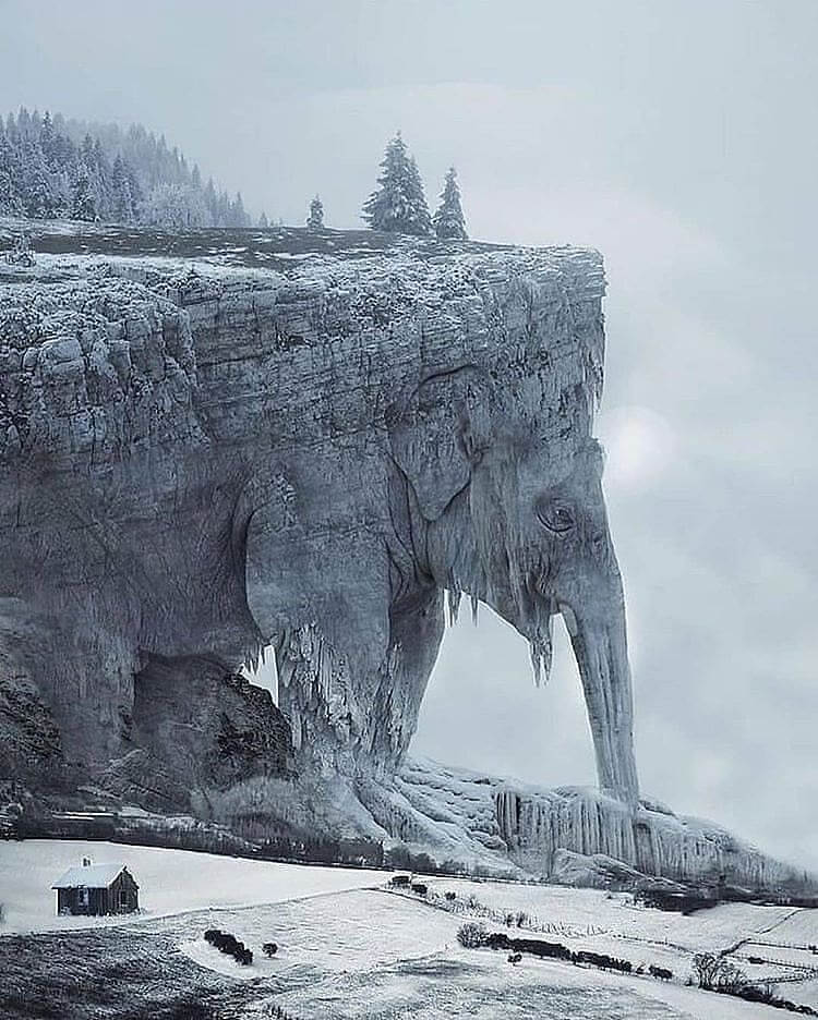 Sabah gibi gazetelerin internet sitelerinde “İnsan eli değmeden tamamen doğal bir yoldan ilginç şekiller alan dağlar ve kayalar karşısında gerçekten şaşıracaksınız.” gibi notlarla sunulan fil ve yavru fil şeklindeki kaya görseli de (“Bir Fili Nasıl Gizlersiniz?” (“How Do You Hide An Elephant?“) adlı photoshop yarışması için) dijital düzenleme ile oluşturulmuş.
