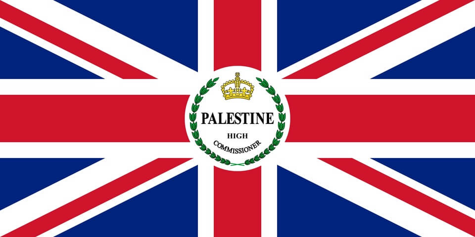 İngiltere’nin Filistin kolonisini yöneten “Filistin Yüksek Komiserliği” (“Palestine High Commissioner”) resmî bayrağı şöyleydi: