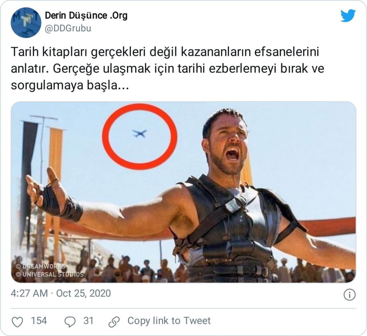 Ancak, Gladyatör’de aslında iddia edildiği gibi bir uçak geçmiyordu.