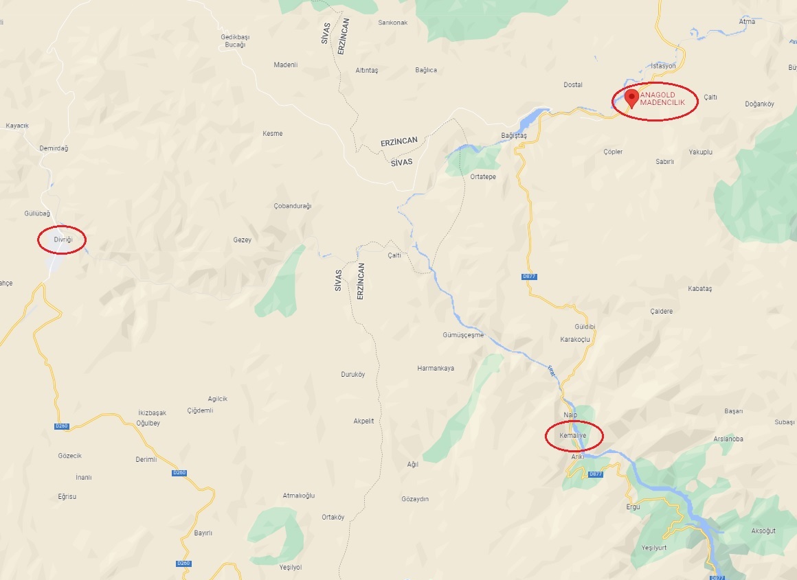 “İlimiz, İliç İlçesi, Çöpler köyü mevkiinde Anagold Madencilik San. ve Tic. A.Ş. tarafından işletilen kompleks madeni işletmesinde, 21.06.2022 tarihinde gece saatlerinde Yığın Liç sahasına siyanür içerikli solüsyon taşıyan boru hatlarında meydana gelen arıza nedeniyle yaklaşık 20 m3 solüsyonunun aktığı, Solüsyonla kontamine olan alanın hipoklorit kullanılarak nötralize edildiği, Kontamine toprağın iş makinaları vasıtasıyla temizlenerek liç sahasına taşınması ile ilgili olarak;