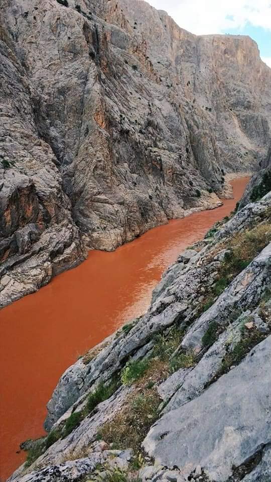 Fırat Nehri’nin kırmızı renkte aktığı görülen 9 Haziran 2022 tarihini taşıyan fotoğraf ise şu şekildeydi: