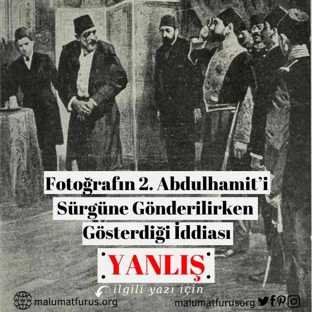 Sosyal medyada son dönemde yapılan bazı paylaşımlarda rastlanılan, Osmanlı Padişahı II. Abdulhamit’in sürgüne gönderilirken çekilen fotoğraf olduğu iddia edilen görsel aslında Gennaro D’Amato adlı ressam tarafından çizilen resme aittir. Bahse konu fotoğrafta yüzü kanlı ve yorgun görünen kişinin bizzat 2. Abdülhamit olduğu iddiası doğru değil.