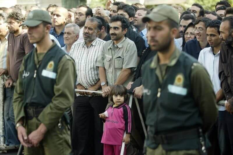 “Bir kız, 2 Ağustos 2007’de Tahran’da Majid Kavousifar ve Hossein Kavousifar’ın asılarak idamını izliyor. İran, birçok reformcu muhalifi hapse gönderen bir hakimin katilleri olan Majid ve Hossein’i yüzlerce kişilik kalabalığın önünde Perşembe günü astı. REUTERS / Raheb Homavandi (İRAN)”