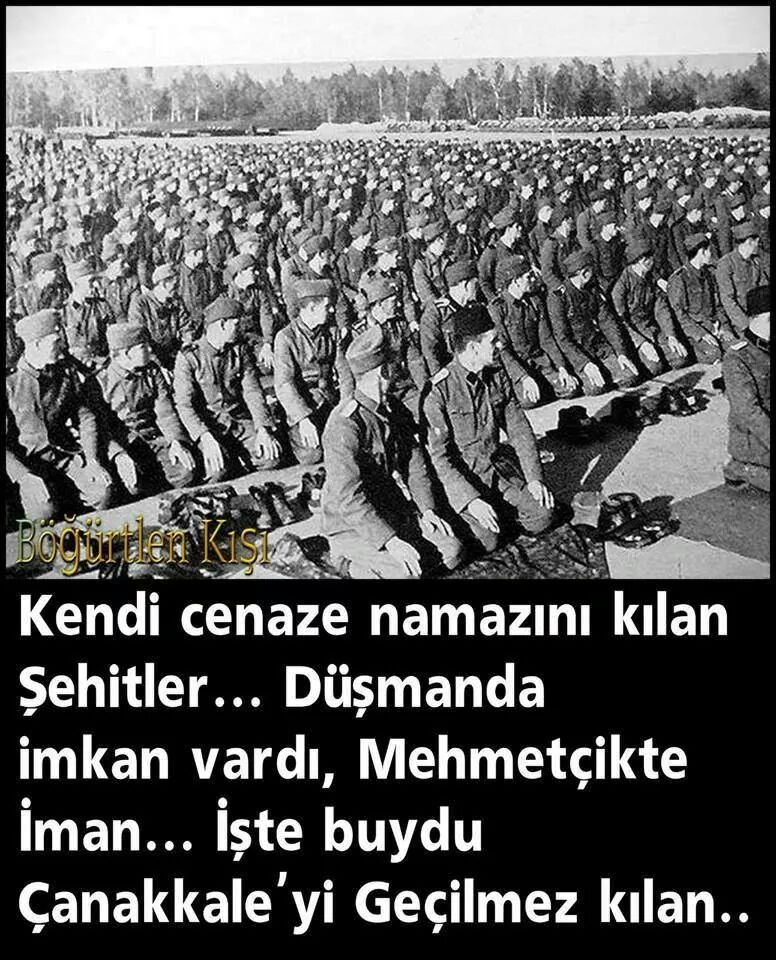Fotoğrafın Çanakkale’de kendi cenaze namazını kılan askerlere ait olduğu iddiası doğru değildir. Cenaze namazında tahiyyat yoktur, oturarak kılınmaz, ayakta (kıyamda) kılınır. Askerler Çanakkale’den değildir. Fotoğraf, 2. Dünya Savaşı’nda Nazi Alman Ordusu bünyesinde savaşan Hanschar (Hançer) Birliği olarak adlandırılan askeri birlikteki Müslüman askerlere aittir.