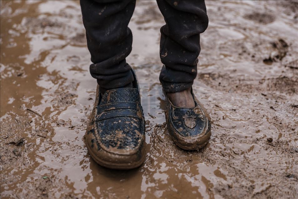 “Suriye’de Esed rejimi ve Rusya’nın saldırılarından kaçarak İdlib’teki güvenli bölgelere göç eden aileler, soğuk ve çamurla mücadele ediyor. İdlib’in Türkiye sınırına yakın ilçelerinden Sarmada’da bulunan ve 130 ailenin barındığı Sarut kampında yoğun yağış ve altyapı eksikliği nedeniyle oluşan göletler, kamp sakinlerinin yaşamını zorlaştırıyor. ( Esra Hacioğlu – Anadolu Ajansı )”