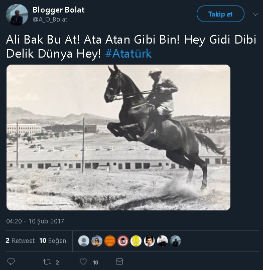 Fotoğrafta ata binerken görüntülenen kişi Atatürk değil, İsmet İnönü’dür. Fotoğrafın 1941 yılı Ağustos ayında İsmet İnönü’nün Ankara Ulus’taki at gezisi sırasında çekildiği belirtilmektedir.