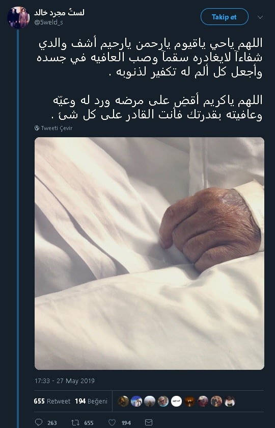 Söz konusu Suudi Arabistanlı sosyal medya kullanıcısının babasının intiharının ardından attığı tweette babasının ardından ettiği dualara yer verdiği anlaşılmaktadır. Arapça metnin Türkçe çevirisi şu şekildedir: