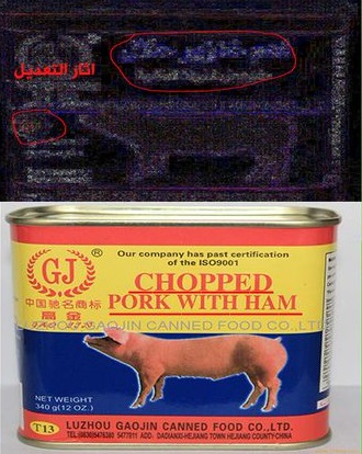 Halbuki, Luzhou Gaojin Canned Food Co.,Ltd. adlı Çinli firma tarafından ürettirildiği anlaşılan, helâl sertifikalı domuz eti konservesi ürünü görseli montaj ürünüdür. Ürünün aslında “jambonlu doğranmış domuz eti” konservesi olduğu ve üzerinde helâl olduğuna dair bir etiketin yer almadığı görülüyor. Montaj fotoğraf üzerinde yapılan analiz, domuzun helâl olduğunu işaret eden yazıların sonradan eklenmiş olduğunu işaret etmektedir.