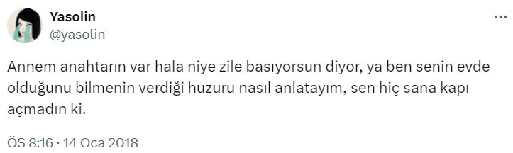 İrfan Can Kahveci’ye atfedilen “Antrenmandan geldiğimde zile basarım, Gözde de “Anahtarın var neden zile basıyorsun?” der. Ya ben onun evde olduğunun huzurunu kendisine nasıl anlatayım? O hiç kendisine kapıyı açmadı ki…” sözü de “Annem anahtarın var hala niye zile basıyorsun diyor, ya ben senin evde olduğunu bilmenin verdiği huzuru nasıl anlatayım, sen hiç sana kapı açmadın ki.” paylaşımından ilhamla uydurulmuştu.