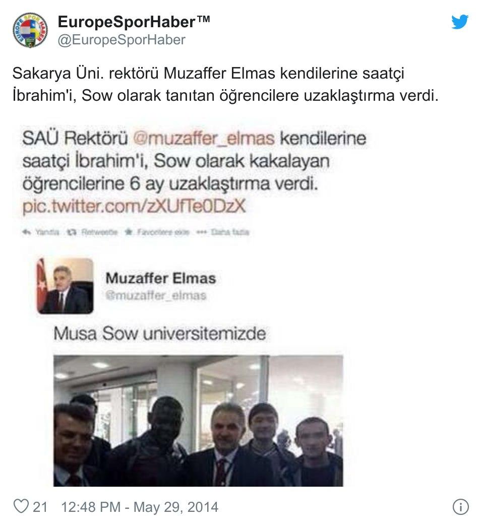 Dönemin Sakarya Üniversitesi Rektörü Muzaffer Elmas’ın kendisine takdim edilen kişiyi Moussa Sow sanarak “Musa Sow üniversitemizde” şeklinde paylaşım yaptığı iddia edilmişti. Muzaffer Elmas ise “Ben çocuklarla konuşurken bir kişi gelip fotoğraf çektirdi. Ben de Twitter’da ‘Sow’ diye espri yaptım.” ifadeleriyle bu zokayı yutmadığını, paylaşımının şaka maksatlı olduğunu aktarmıştı. Daha sonra ise, kandırıldığını anlayan Rektör Elmas’ın kendisine bu şakayı yapan öğrencileri 6 ay okuldan uzaklaştırdığı iddia edilmişti. Tabii ki bu iddia da trollemeydi. Ve bu iddiaya kanan basın kuruluşları ve sosyal medya profilleri mevcuttu.