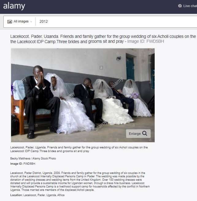 Alamy’de söz konusu fotoğrafın Gana’da değil, 30 Ocak 2009 tarihinde Uganda’da çekildiği notuyla aktarıldığı görülebiliyor.