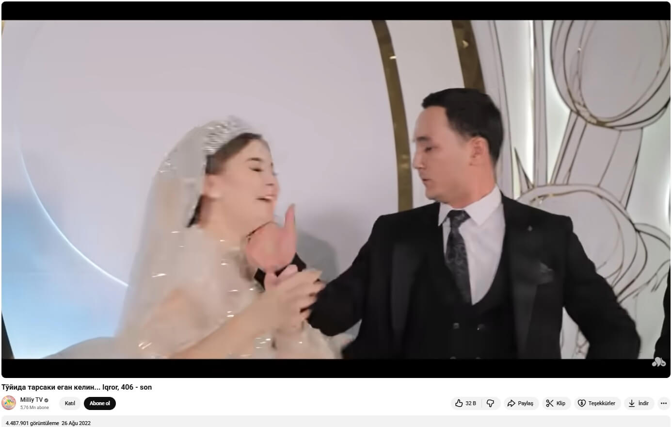Düğün sırasında damadın geline tokat attığı, gelinin annesinin araya girerek kızını salondan çıkardığı ana ait olduğu iddiasıyla paylaşılan video, Özbekistan’da yayınlanan “İqror” adlı diziden bir SAHNE