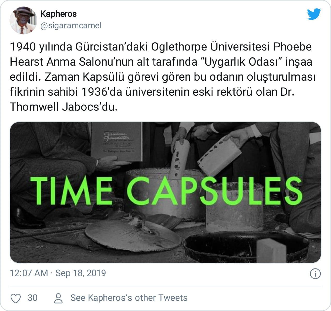 Serkan Tanyildizi (@srkntnyldz): “Gürcistan’da, kıyamet sonrası toplumun nasıl yeniden inşa edileceğine dair 8 dilde talimatlar veren, aynı zamanda pusula, takvim ve saat işlevi gören anıt 2022 yılında bir vandal tarafından yıkıldı. Bu vandala talimatı kimin verdiği hala ortaya çıkmadı?”