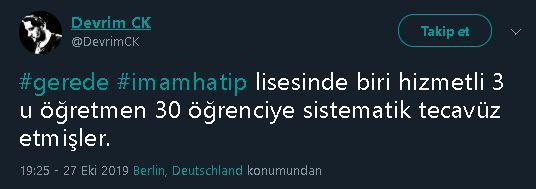 Sosyal medyada ve çeşitli internet sitelerinde geçtiğimiz haftalarda Gerede İmam Hatip Lisesinde hademe ve idareciler tarafından öğrencilere tecavüz edildiğine yönelik bir iddianın paylaşıldığına şahit olduk.