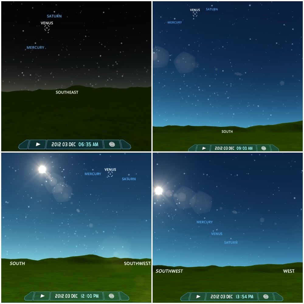 3 Aralık 2012’de Merkür Venüs ve Satürn Birbirlerine Nispeten Küçük Bir Mesafede Yakındı ve Gökyüzünde Net Bir Şekilde Görünmüyordu