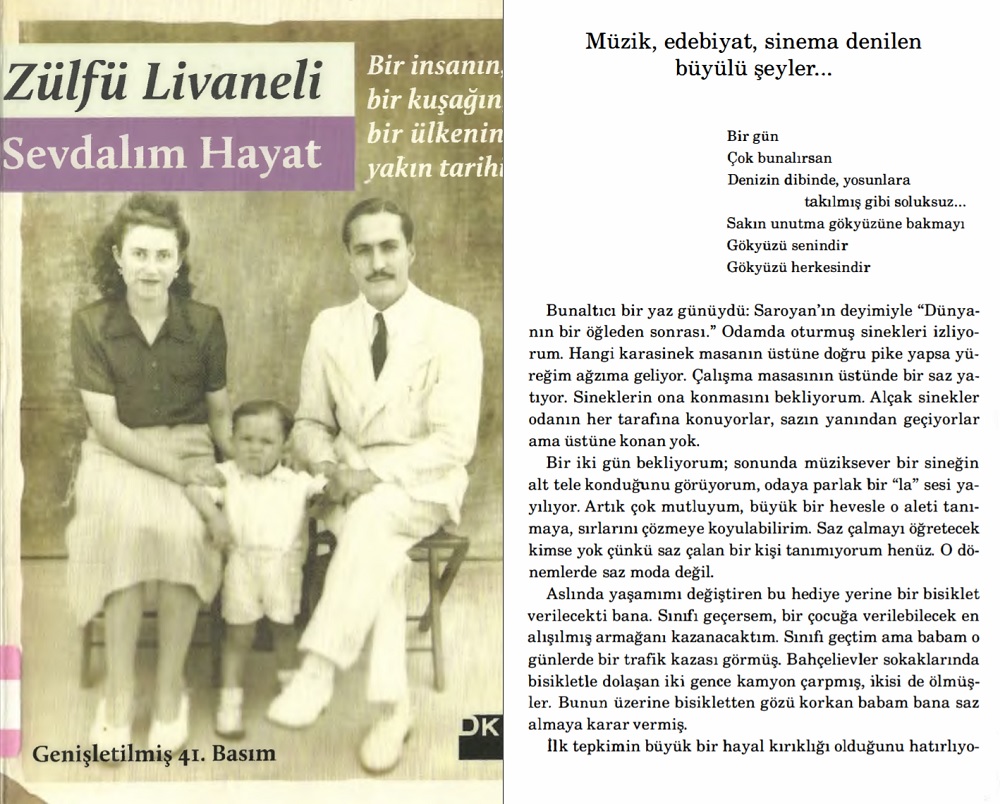 Zülfü Livaneli’nin “Sevdalım Hayat” adlı kitabında “Gökyüzü Herkesindir” şiirinin yer aldığı görülmektedir.