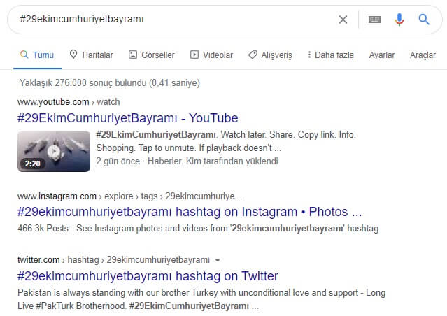 Örneğin: #29ekimcumhuriyetbayramı