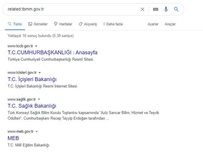 Örneğin: related:tbmm.gov.tr