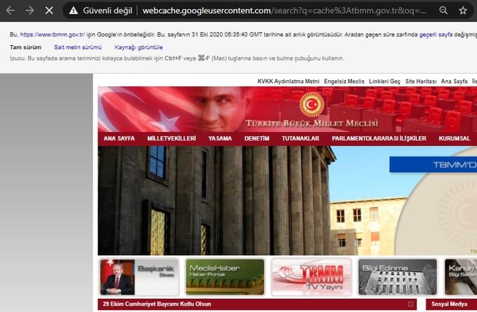 Örneğin: cache:https://twitter.com/TBMMresmi ya da cache:tbmm.gov.tr