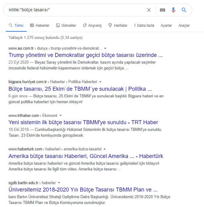 Örneğin: intitle:”bütçe tasarısı”