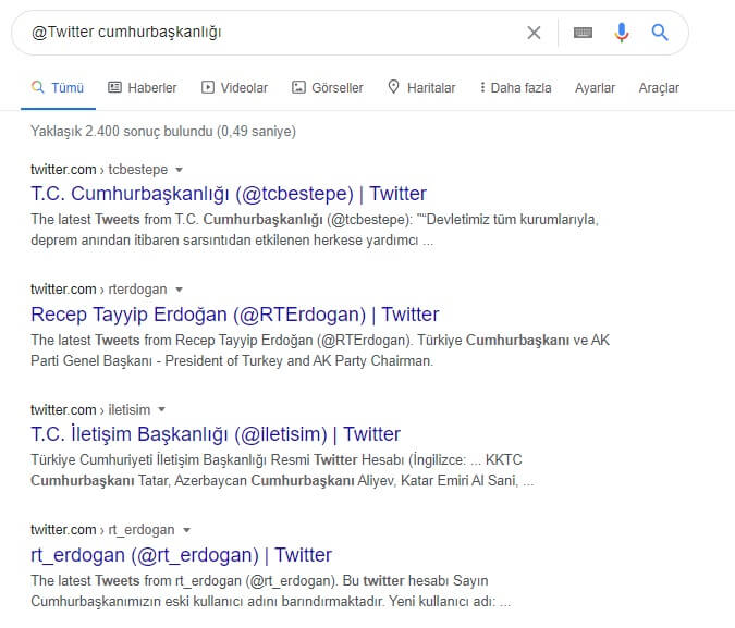 Örneğin: @Twitter Cumhurbaşkanlığı