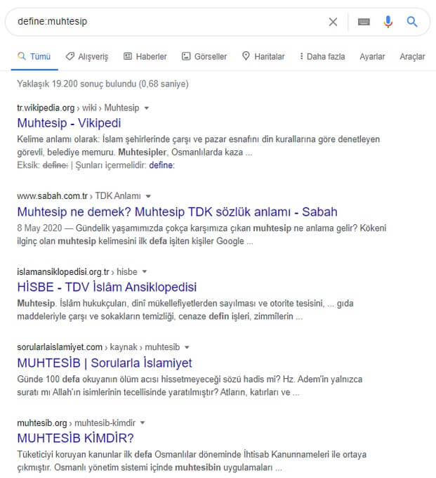 Örneğin: define:muhtesip