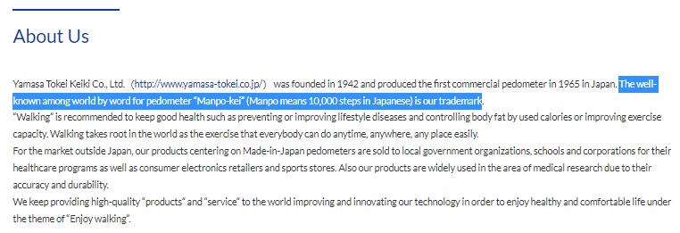 Manpo-kei adlı adımsayarı üreten Yamasa adlı firma, internet sitelerinde markanın anlamının “10.000 adım sayar” olduğunu belirtmişti.