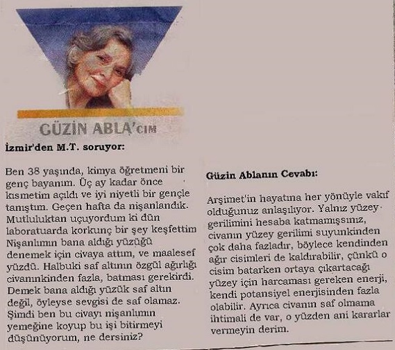 Okurlarının ilişki temalı mektuplarını köşesine taşıyan ve onlara tavsiyelerde bulunan Güzin Abla köşesine herkes aşinadır. Uzun yıllardır dile getirilen “Güzin Abla aslında bir erkekmiş“, “Güzin Abla köşesini aslında bir erkek yazıyormuş” iddiası aslında gerçeği yansıtmıyor.