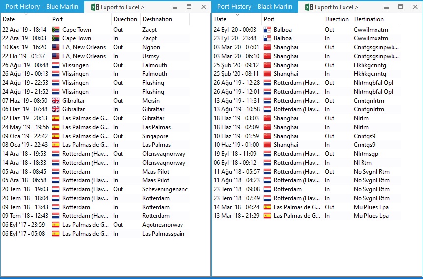 Fotoğraflarda görülen Blue Marlin ve Black Marlin adlı yüksek tonajlı cisimlerin taşımasını gerçekleştiren gemilerin son 3 yıllık liman giriş çıkış kayıtlarında Türkiye’ye yaklaşmadıkları dahi görülebiliyor (Gemilerin rotalarını gösteren bir radar uygulaması olan Marine Traffic üzerinden sorgu yapılabilmektedir).