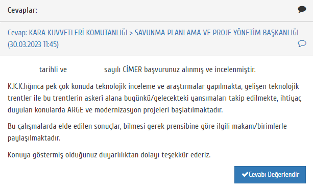 … tarihli ve … sayılı CİMER başvurunuz alınmış ve incelenmiştir.