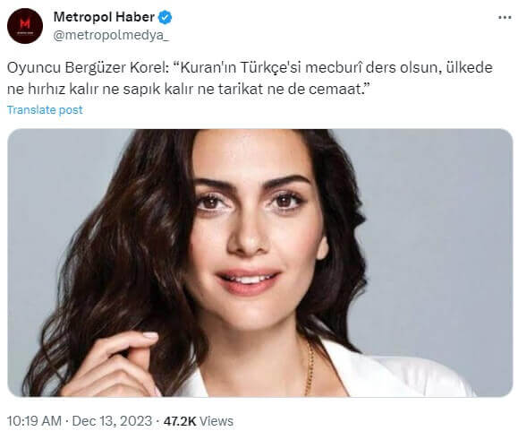 Bergüzar Korel’e atfedilen Kuran’ın zorunlu Türkçe ders olması hakkındaki sözde yer verilen “hırhIz” yanlış yazımı da haber girişimlerinin kopyala-yapıştır alışkanlığını yeniden ifşa etti.