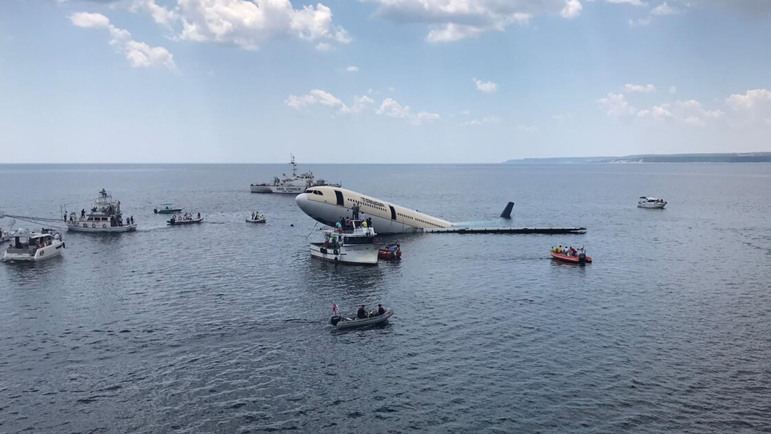 14 Haziran 2019 tarihinde Edirne’nin Keşan ilçesindeki İbrice Limanı’nda dalış turizmine ve deniz balık çeşitliliğinin artırılmasına katkı sağlamak amacıyla Airbus A330 tipi yolcu uçağının Saros Körfezi’nde kıyıdan 1 mil açığa batırıldığı ana ait görüntü düşen uçağın enkazına ait olduğu uydurularak kullanılmış.