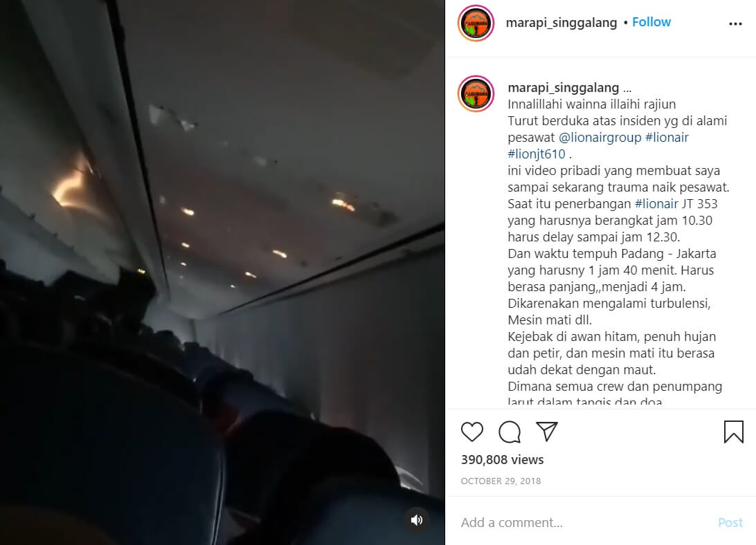 Görüntüyü kaydeden David Ditama, AFP’ye yaptığı açıklamada 13 Aralık 2017 günü Twitter’da paylaştığı videoyu Endonezya’da Lion Havayollarına ait JT 610 sefer sayılı yolcu uçağının 29 Ekim 2018 günü kalkıştan kısa süre düşmesinin ardından duygularını ifade etmek amacıyla @marapi_singgalang uzantılı Instagram hesabında 29 Ekim 2018 günü yeniden yüklediğini belirtmiş.
