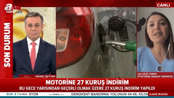Görseldeki ekran görüntüsünde yer alan EPGİS Genel Başkan Yardımcısı Aslı Çelik Yaman, katıldığı “Hikmet Öztürk ile Ajans Bugün” adlı yayında, 19 Mart 2020 gecesinden itibaren geçerli olan motorin fiyatına yapılacak indirim miktarına değinmişti.