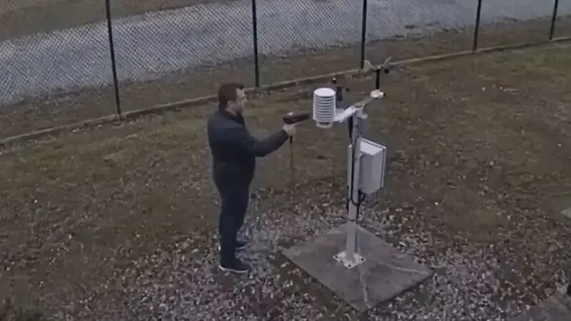 Bir adamın hava durumu istasyonundaki sıcaklık sensörüne saç kurutma makinesiyle müdahale ettiğini gösteren videoyu gündeme getiren sosyal medya paylaşımı:
