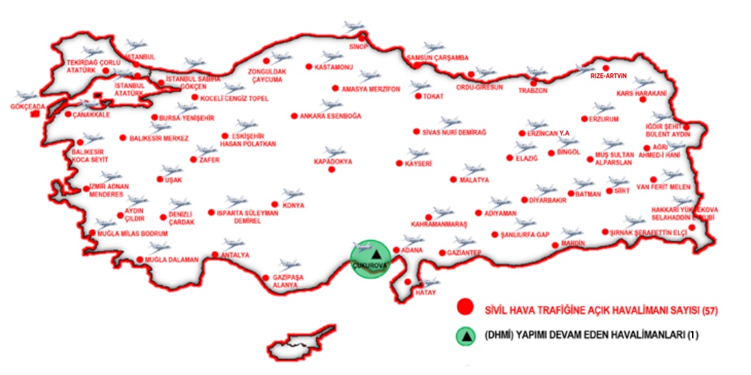 2002 yılında ülkemizde 39 havalimanı varken, bunların sadece 25’i aktif şekilde kullanılabilmekteydi.