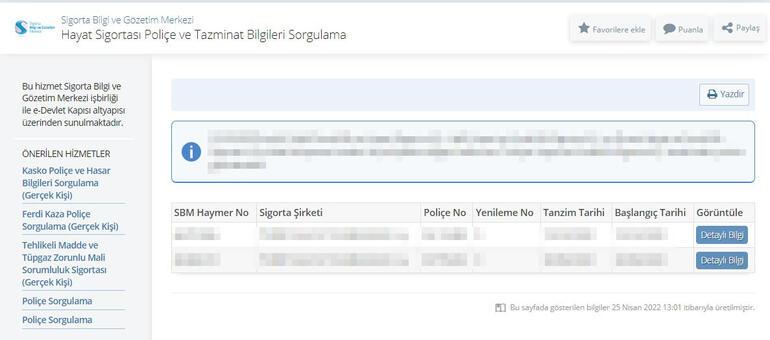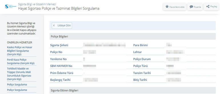 “Bankadan kredi kullandıysanız ve hayat sigortası yapılmışsa, e-devletteki hayat sigortası poliçe sorgulaması üzerinden; sigortanın hangi şirketten yapıldığı, sigorta ettiren bankanı adı, sigortanın başlangıç ve bitiş tarihi, yürürlükte olup olmadığı, poliçenin hangi teminatları (vefat, sakatlık, tehlikeli hastalıklar) kapsadığı gibi tüm detayları görebiliyorsunuz. Bu ne sağlıyor? Örneğin, yakınınız bankadan kredi kullandı ve sonrasında vefat etti; hayat sigortası var mıydı, varsa neleri kapsadığı gibi bilgileri e-devlet üzerinden öğrenmiş oluyorsunuz, ona göre de yasal haklarınızı kullanıyorsunuz.